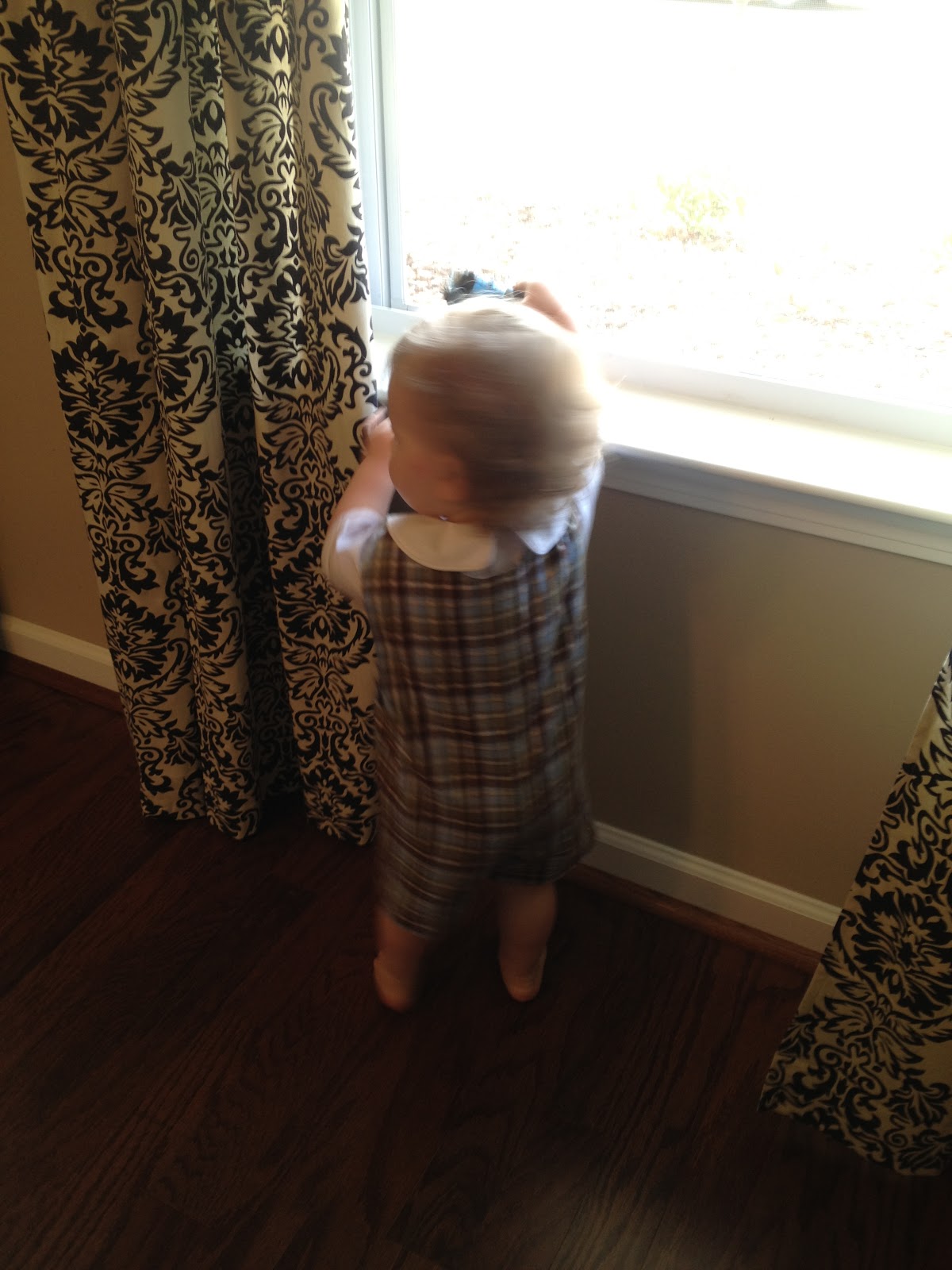 This was one week ago Sunday - perfect weather, windows open, Asher in a shortall and playing with his choo choo in the window sill. One week later it was freezing and they were calling for snow and sleet.